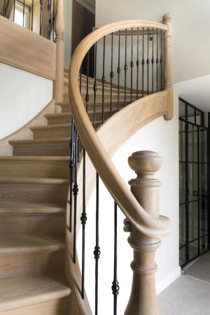“Oudenhoven Trappen bouwde een sterke reputatie op als specialist in ambachtelijke en exclusieve trappen. Bijna dertig jaar geleden werkte Rolf van den Oudenhoven bij mijn vader, Marc Van Loon. Als vierjarige stond ik met grote ogen te kijken naar wat er allemaal gebeurde in het atelier. Ik herinner me nog dat hij een keer een trapwang op de werkbank legde en dat ik er met mijn vingertjes tussen zat. Dat is vandaag allemaal vergeten en vergeven”, lacht Wim Van Loon.