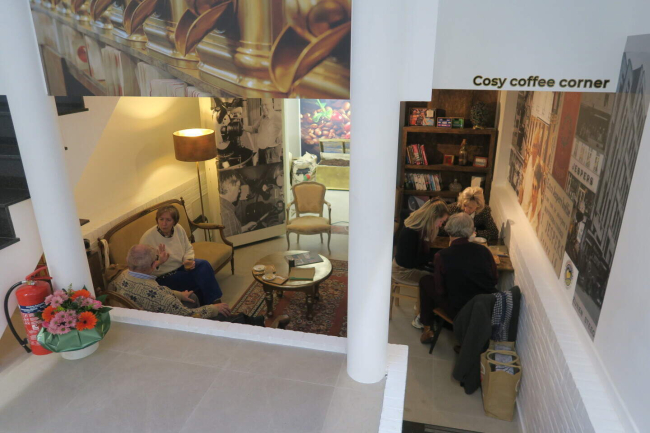 Jespers Koffie vond in het fraaie modernistische winkelpand naast de Standaard Boekhandel een meer geschikte plek om de sterk gegroeide schare liefhebbers van haar blends te verwennen.