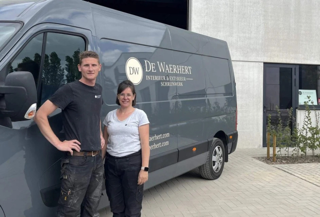 “Aanvankelijk deed ik het in bijberoep, maar dat is dan geëscaleerd naar een hoofdberoep”, lacht Yves. Mét meewerkende echtgenote intussen, want Kathleen is opvoedster van opleiding maar werkt nu ook mee in de schrijnwerkerij. “Ik doe het heel graag”, vertelt ze. “Het is een beetje een roeping. Ik ga met plezier mee plaatsen op werven. Er zijn weinig dingen die te zwaar zijn, en we werken ook nog met een onderaannemer.”