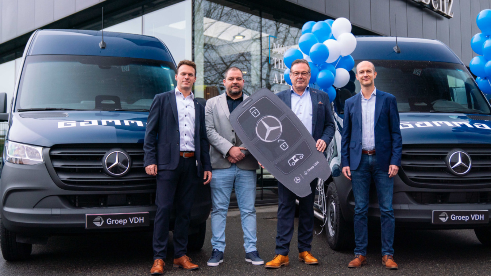 Groep VDH in Herentals beleefde een memorabele vrijdag. De showroom aan de Toekomstlaan vormde het decor van een betekenisvolle sleuteloverhandiging. De eerste 15 eSprinters werden door Groep VDH uitgeleverd aan de eerste Gamma-vestigingen.