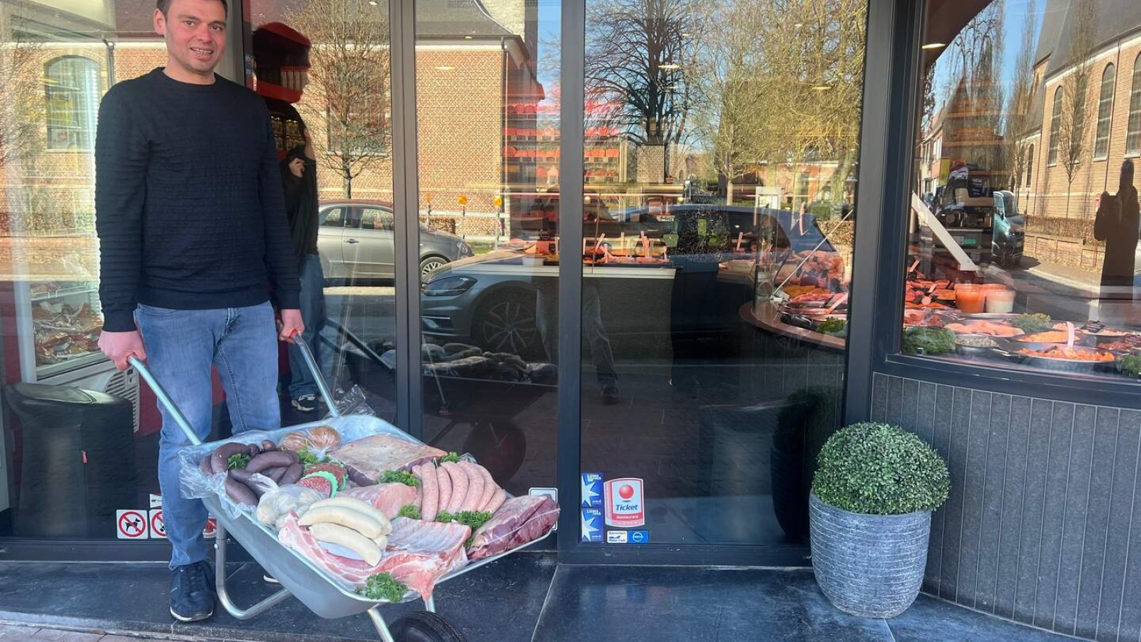 De actie van slagerij Torfs gaat van start op 13 maart en loopt tot 18 april. “Dat zijn vijf weken en dat wil dus ook zeggen dat we vijf gevulde kruiwagens zullen wegschenken. We gaan dit op een zeer klantvriendelijke manier doen. De klant krijgt eigenlijk een waardebon van 500 euro en kan die naar eigen goeddunken besteden. Dat mag in één keer, maar je mag er ook gewoon je wekelijkse aankoop mee betalen tot het krediet op is. Niet iedereen heeft in zijn diepvries voldoende vrije ruimte om voor 500 euro vlees in te bewaren.”