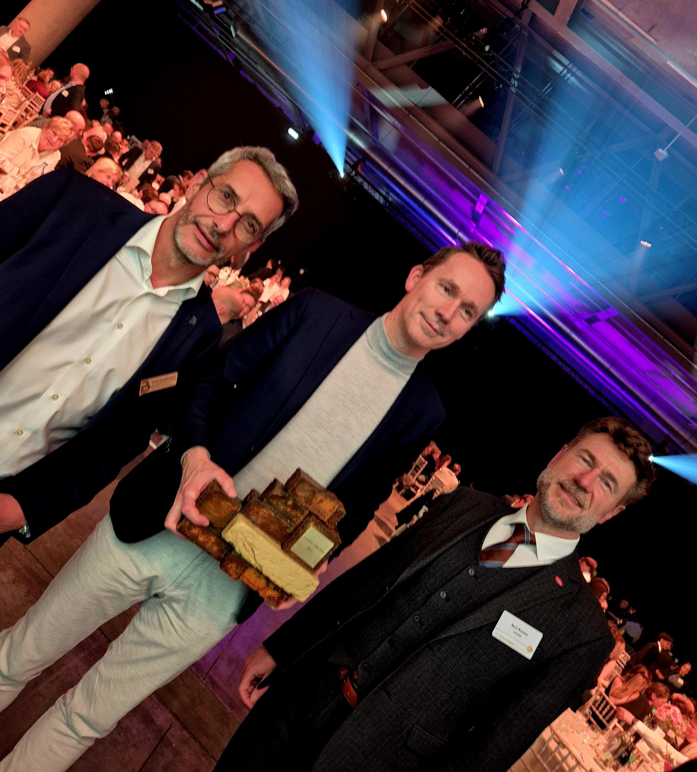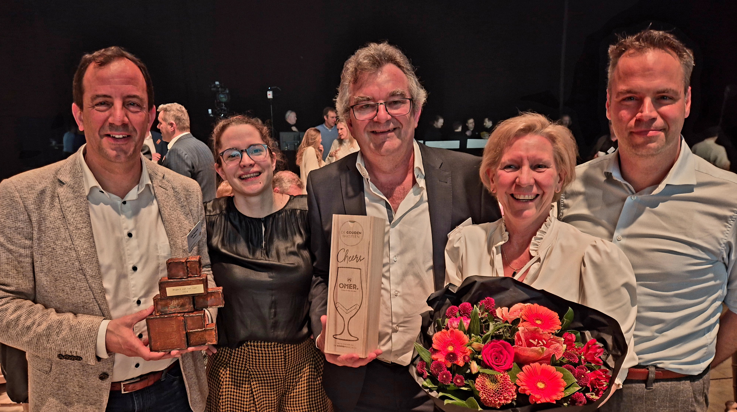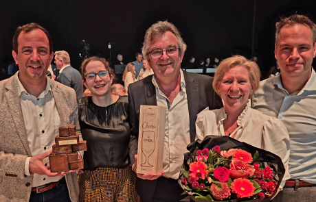 De Gouden Baksteen is een initiatief van Bouwunie om spraakmakende initiatieven van Vlaamse bouwbedrijven in de kijker te zetten. Er zijn diverse categorieën: van beste starter (waar het Genkse Wally net naast de hoofdprijs greep), over meest duurzame bedrijf en beste werkgever tot de digitale primus. In de competitie voor Beste Project haalde Vandebos uit Alken het overtuigend. Zij renoveerden het Martin’s Gasthuis Hotel op de Hertogensite in Leuven, en werden daarvoor terecht bekroond. Krijn Henrotte en Staf Jacobs van Vandebos mochten voor een volle zaal met 650 aanwezigen de prijs in ontvangst nemen. “Een fantastische prestatie van ons hele team”, aldus een trotse CEO Krijn Henrotte.