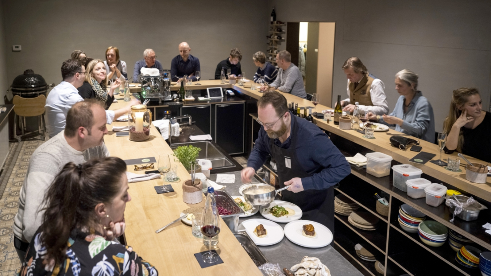 Het concept van Restaurant U is vooral kenmerkend door de opstelling. De gasten zitten aan een grote tafel in U-vorm. In het midden prepareert chef Lemmens zijn gerechten. “Het vergroot de persoonlijke beleving en de interactie met andere gasten”, zegt hij. “Het gevoel van een open keuken moet je hier niet ver zoeken.” Al zal dat vanaf volgend jaar dus op een nieuwe locatie zijn.