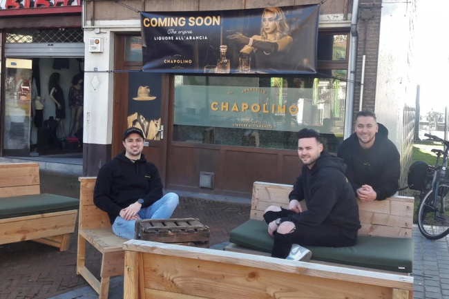 “Eerst een eigen drank en nu ook een eigen café, zot toch”, lachen de heren uit Boom en Willebroek. Wat begon als een ‘signature drink’ voor het vrijgezellenfeest van Jens neemt steeds grotere proporties aan. Vorig jaar kwamen ze met hun eigen likeur, Chapolino, op de markt. De likeur is een arancello, net zoals limoncello eigenlijk maar dan op basis van appelsienen in plaats van citroenen.