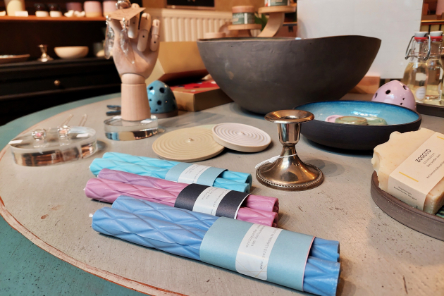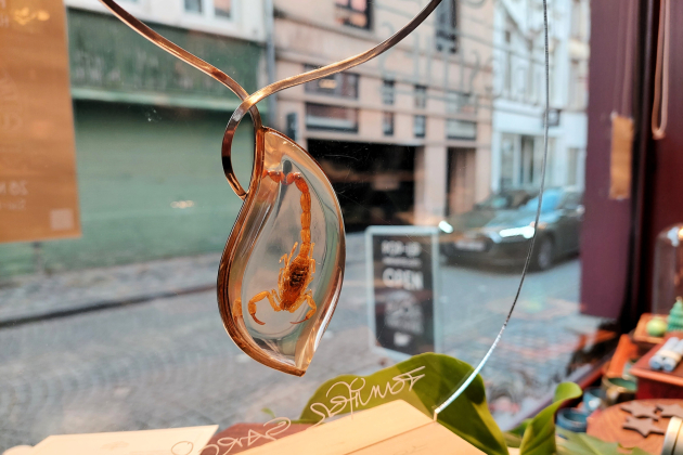 Naast zepen en badzout, kan je bij The Cabinet of Curiosities onder meer terecht voor kaarsen, huisparfumes, huidverzorgingsproducten en de keramiek van Wendelen zelf. Daarnaast worden er ook heel speciale juwelen verkocht. “Die zijn écht natuurlijk”, zegt de zaakvoerster met een lach. “Want er zitten bijvoorbeeld een echte schorpioen, kever of vlinder in. Wie op zoek is naar een origineel en leuk eindejaarsgeschenk, vindt hier dus zeker iets.”