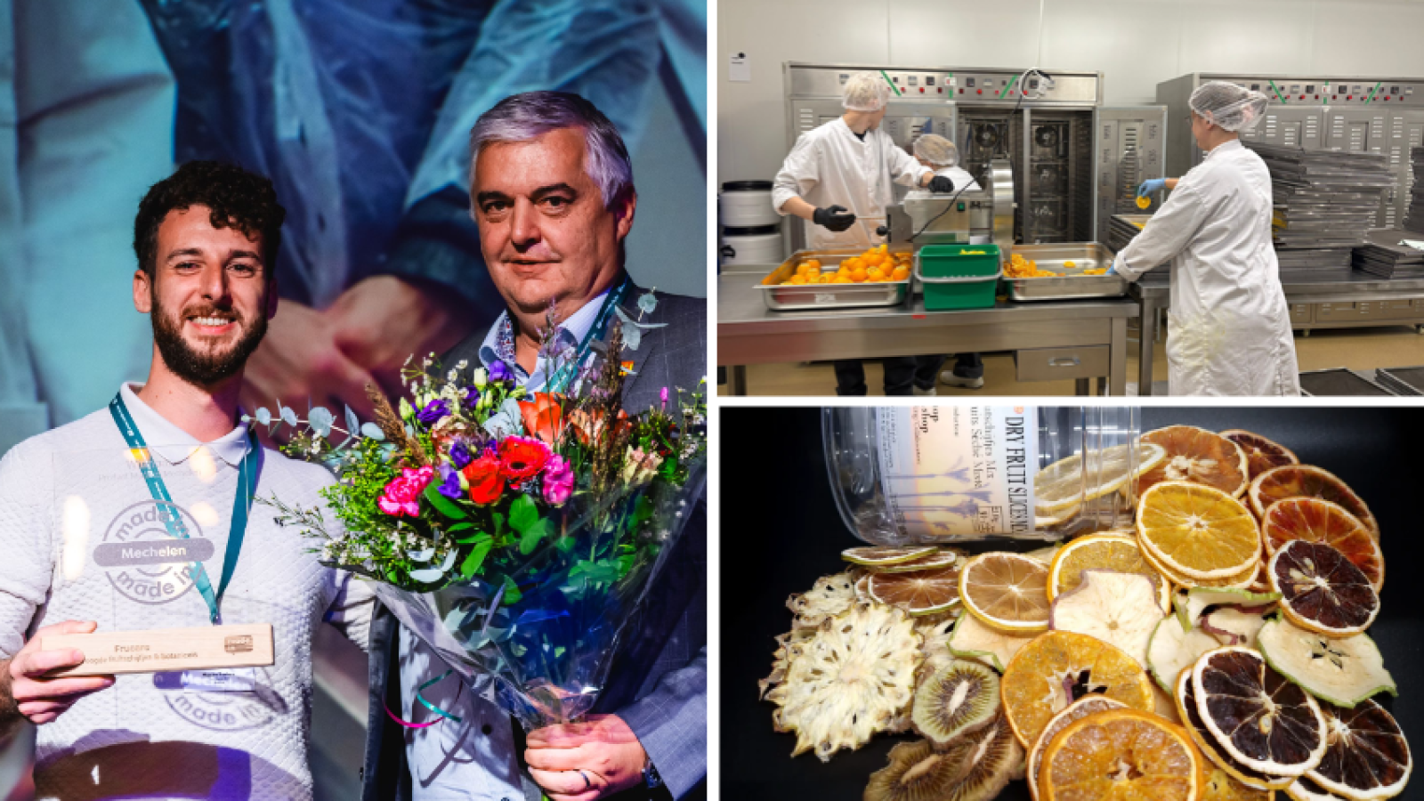 Maxim riep de hulp van zijn broer, die op het autismespectrum zit, in voor het maken van de fruitschijfjes. “En dat deed hij goed, tot de orders te groot werden. Tienduizend limoenen snijden was te veel voor ons twee”, vertelt Maxim. “Maar een droogtunnel aankopen en inboeten op kwaliteit zag ik niet zitten. Tijdens een opleiding kwam ik toevallig een vertegenwoordiger van een maatwerkbedrijf, en toen ging er een lampje branden.”