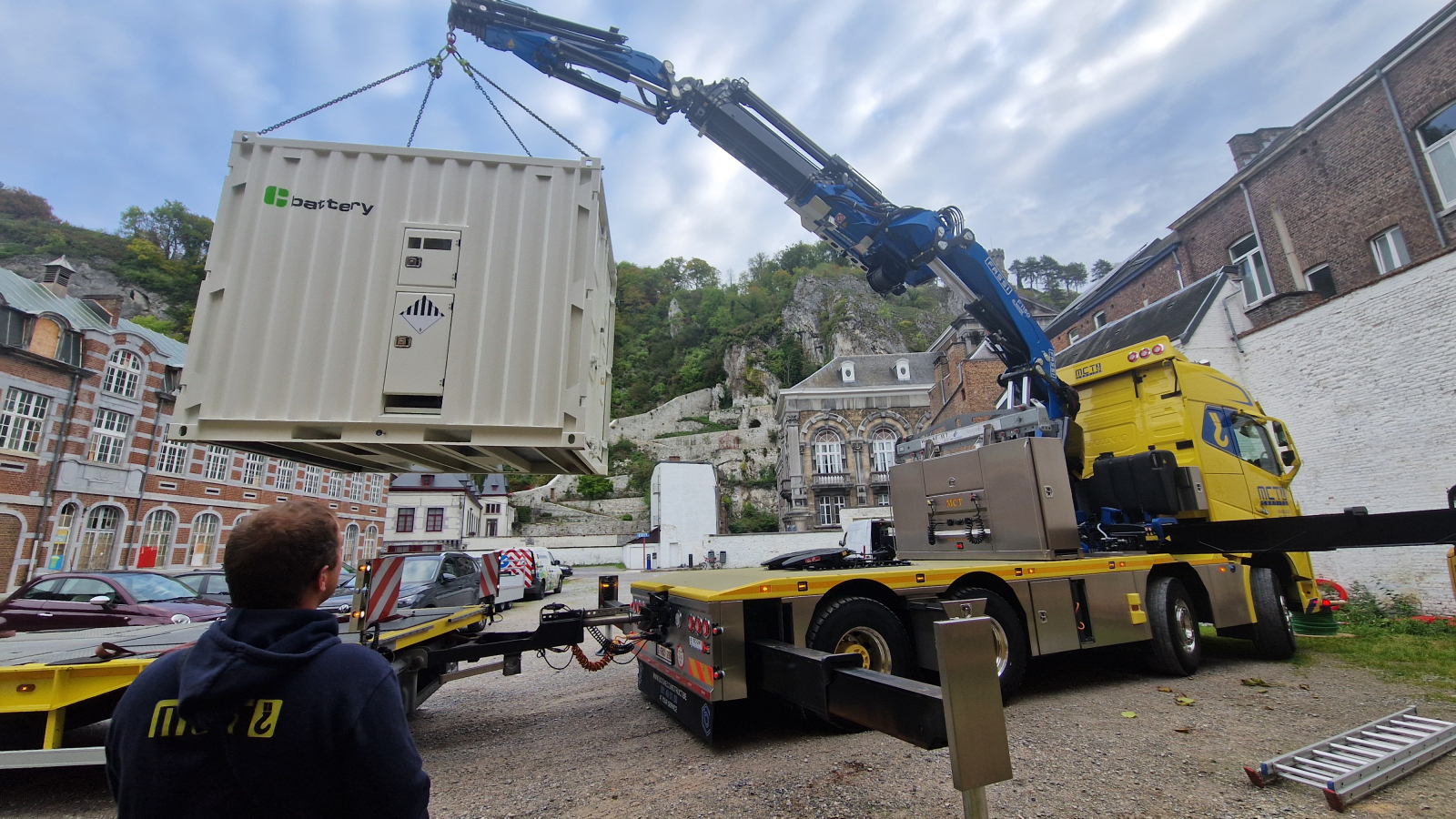 Dinsdagochtend installeerde C-battery een batterijcontainer die fungeert als microgrid, zeg maar een kleinschalige versie van een klassiek stroomnet dat energie kan opslaan, verdelen en bijladen. Dankzij een proces van ‘druppelladen’ vult de batterij zich continu met het beperkte beschikbare vermogen, waardoor een netsversterking op de parking niet nodig is.