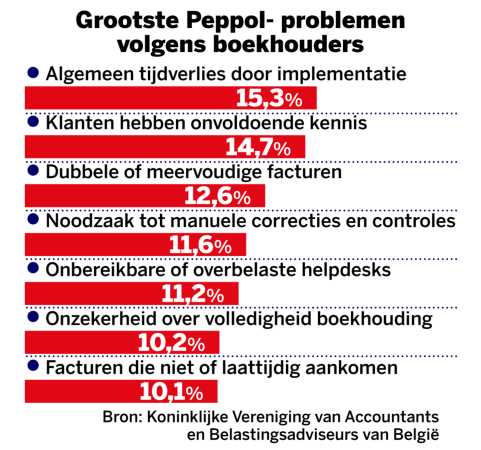 De Brugse is niet de enige die klaagt over het extra werk. “In Vlaanderen zegt één op de drie ondervraagden dat Peppol meer tijd vergt”, zegt Cedric Tack. “En de vele technische foutmeldingen en softwareproblemen zitten daar ook voor veel tussen.” De leveranciers mogen die dan afdoen als “kinderziekten”, de frustratie is er niet minder om. “Meer dan de helft van de ondernemers geeft aan dat de start stroef of zelfs slecht verloopt.”