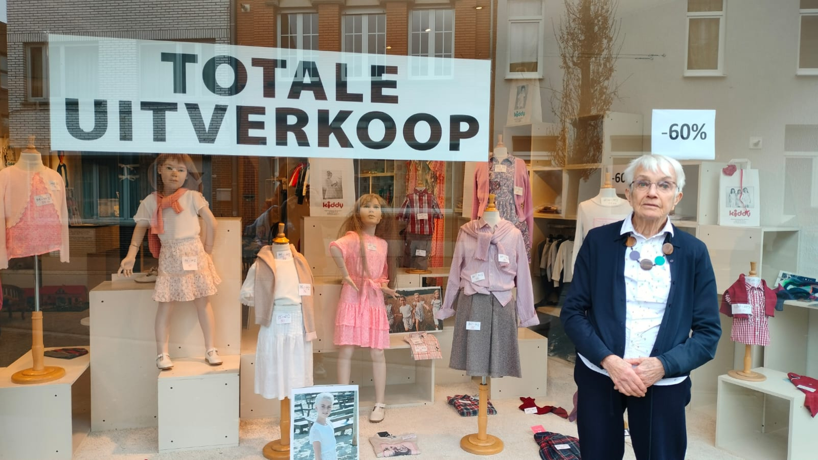 De winkel van Marie-Claire blijft nog open zolang de voorraad strekt. Al enkele maanden staat ‘totale uitverkoop’ op de etalage. “Bijna alles voor de kleintjes is wel al verkocht”, zegt Marie-Claire. “Voor de oudere kinderen heb ik nog heel wat. Al kiezen die liever zelf wat ze dragen. Ik vind dat spijtig: vandaag zijn kinderen allemaal identiek gekleed.”