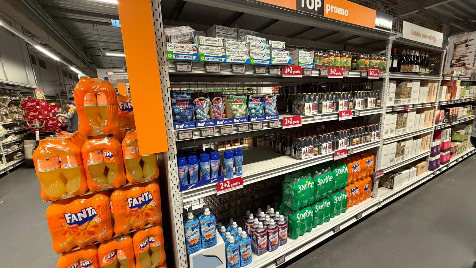 Maar nu start er een proefproject in vijf winkels – Vilvoorde, Sint-Katelijne-Waver, Wemmel, Ans en Hasselt – waarbij de eerste meters van dat rayon voortaan ingepalmd zijn door de ‘top- en folderpromo’s’. Eerst als het ware ‘1+1 fles Dreft’ dus in de plaats van de traditionele fles bordeaux of côtes du Rhône. “We doen dit omdat prijs en promo steeds belangrijker worden voor klanten”, zegt woordvoerster Eva Biltereyst.
