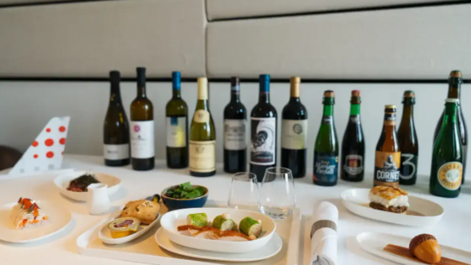 Bij het nieuwe menu hoort ook een zorgvuldig uitgekozen drankselectie. Brussels Airlines werkt daarvoor opnieuw samen met Master of Wine Jan De Clercq en biersommelier Sofie Vanrafelghem, die zowel de wijnen als de Belgische bieren selecteerden.